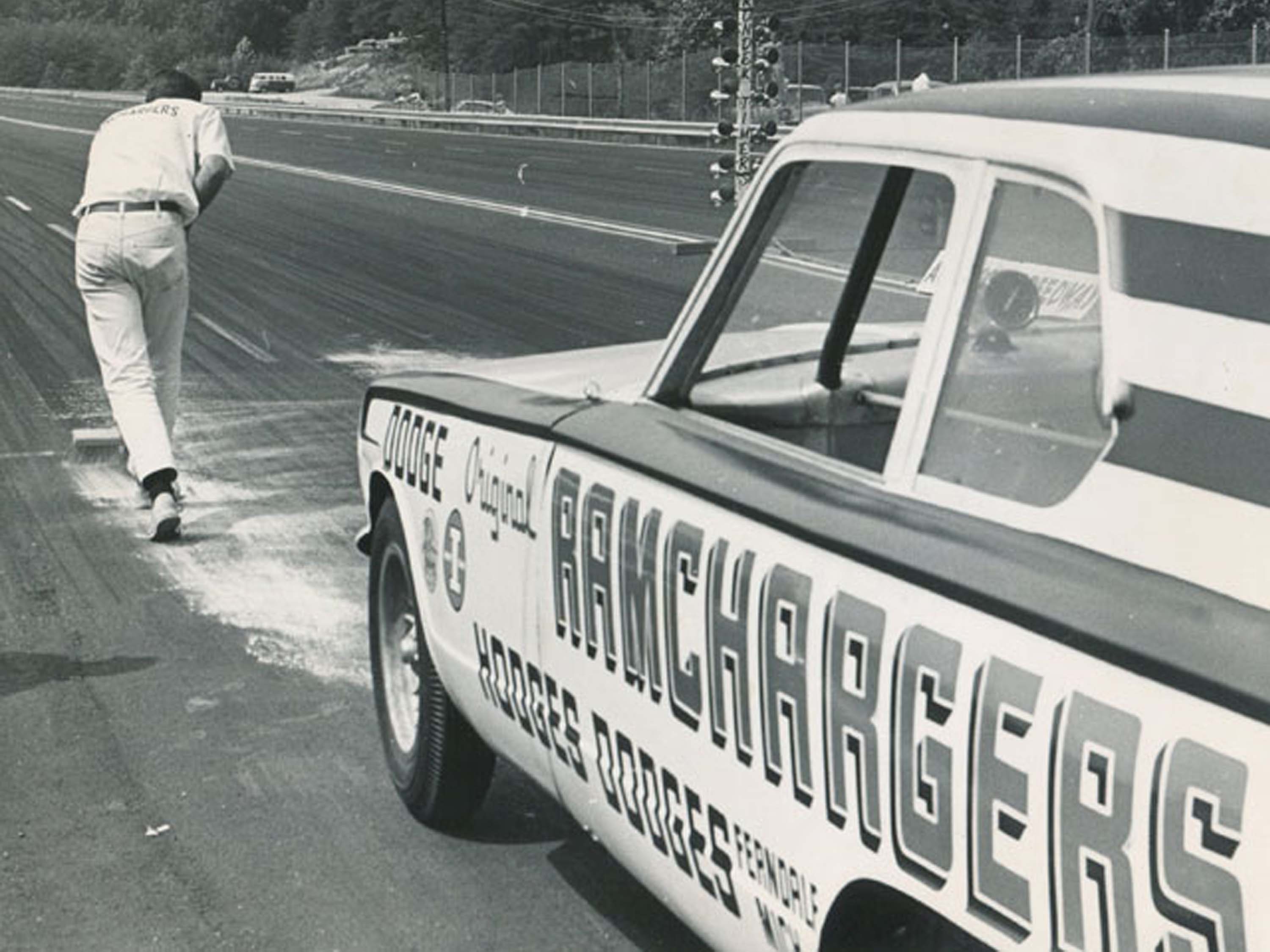 When it was time to move on from the 66 Dart, it was John Livingston and his partner, famed Super Stock Racer, Mr. Four Speed, Herb McCandless who showed up with their checkbook. When Herb and John took possession of the Dart, they removed the "S" from the end of the RAMCHARGERS name on the sides of the car and attempted to race the car under the title "The R RAMCHARGER." Everything else on the car's appearance was left alone. Candy Stripes and all. Obviously, this did not sit well with the actual RAMCHARGERS. Mike Buckel even approached McCandless and told him he needed to paint the car and change the name. But before Herb and John had the chance to do that, the Racing Gods had an even bigger objective to this livery.